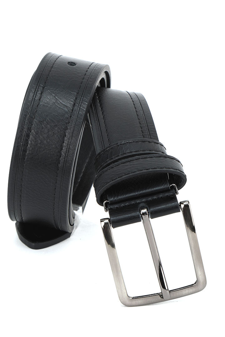 Elevate your semi-formal look with the Binnino Flat PU Belt with Stitch Fit by Metal Clamp in Black. Made from premium PU leather, this belt combines functionality and style with its sleek black color, detailed stitching, and metal clamp for a secure fit. A versatile addition to any wardrobe, it complements both casual and formal outfits, adding a refined touch.