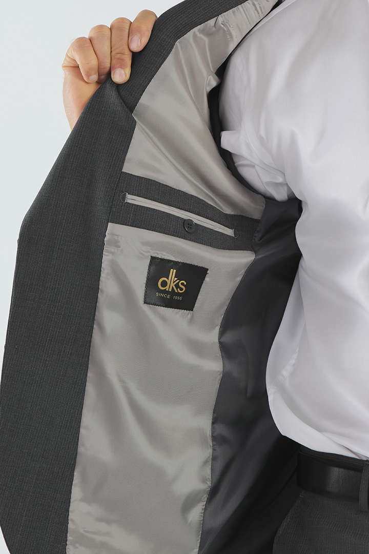 Refine your professional look with the DKS Slim Fit 2-Button Suit in grey—a versatile choice for any formal occasion. The sharp, slim cut is complemented by double side vents for a tailored fit and ease of movement. Crafted from a high-quality blend of 74% wool, 18% polyester, and 8% lycra, this suit offers the perfect balance of breathability, stretch, and durability. Ideal for business wear, corporate events, and weddings, the solid grey color ensures a polished, sophisticated appearance. Available at BRANDS UAE, this premium suit is designed to meet the needs of modern men seeking stylish yet functional formalwear across Dubai and the GCC.
