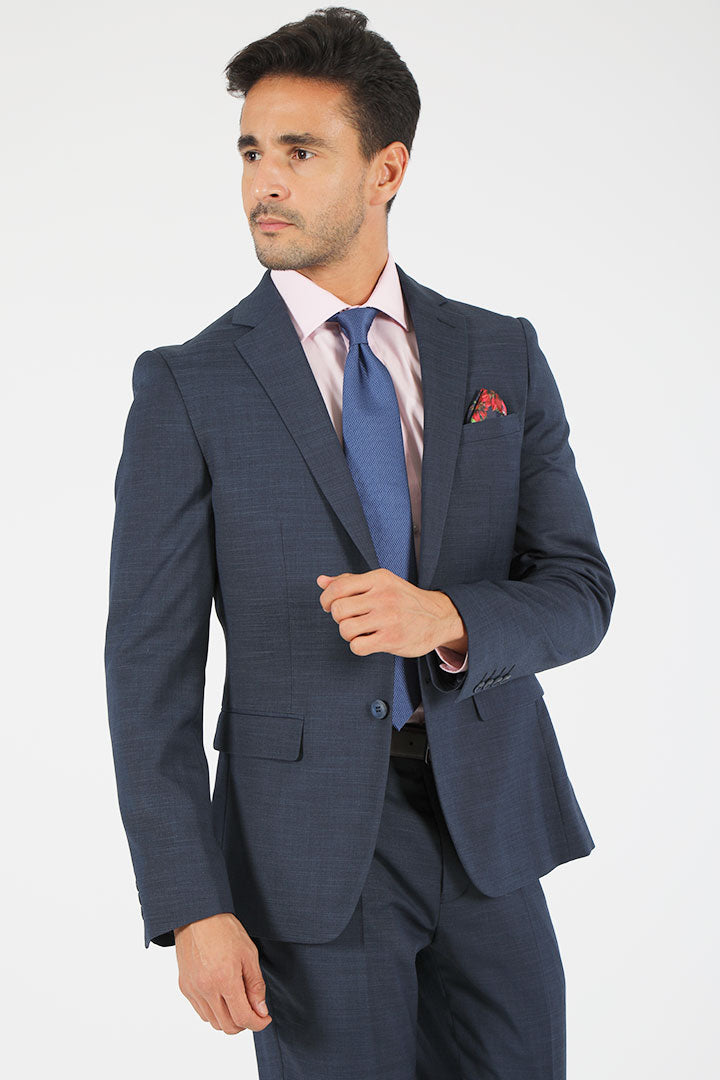 A refined two-piece suit by Francisco Tolli collection. Crafted with a subtle textured pattern with natural stretch, this elegant suit is cut to a narrow fit for a modern look. Design: Slim fit, 2 buttons 2 vents, Fully lined, Standard length, notch lapels