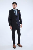 Navy blue men’s suit is curated from the best fabric and is ideal for working men. The material of the navy blue suit is flexible and is comfortable for an all day wear. Shop the latest collection of the Francisco Tolli navy color suit online and in-store. Fabric: Terry rayon fabric | SKU: S-FPR57082SP| Special Features : Formal, 2 button, 2 vents, self designed | Fit : Slim fit