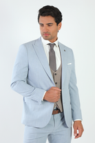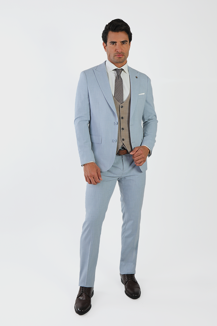 This Jack Morgan slim-fit suit in light blue checks is the epitome of modern sophistication. Featuring a sleek two-button, two-vent design, it’s tailored for a sharp fit. Made with a high-quality blend of 67% polyester, 31% viscose, and 2% spandex, this suit offers the perfect balance of comfort and stretch. The matching vest enhances the look, making it a great choice for any formal occasion or business event.