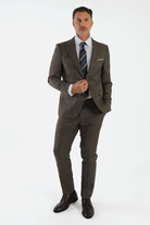 Make a statement in this Jack Morgan slim-fit suit, crafted from a premium fresco fabric that perfectly balances style and comfort. The dark brown hue adds a sophisticated touch to your formal wardrobe, while the two-button, two-vent design ensures a sharp, tailored silhouette. With a fabric blend of 55% wool and 45% polyester, this suit provides both breathability and durability. The coordinating vest adds an extra layer of refinement, making it an ideal choice for formal events or business occasions where you want to stand out.