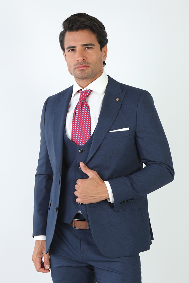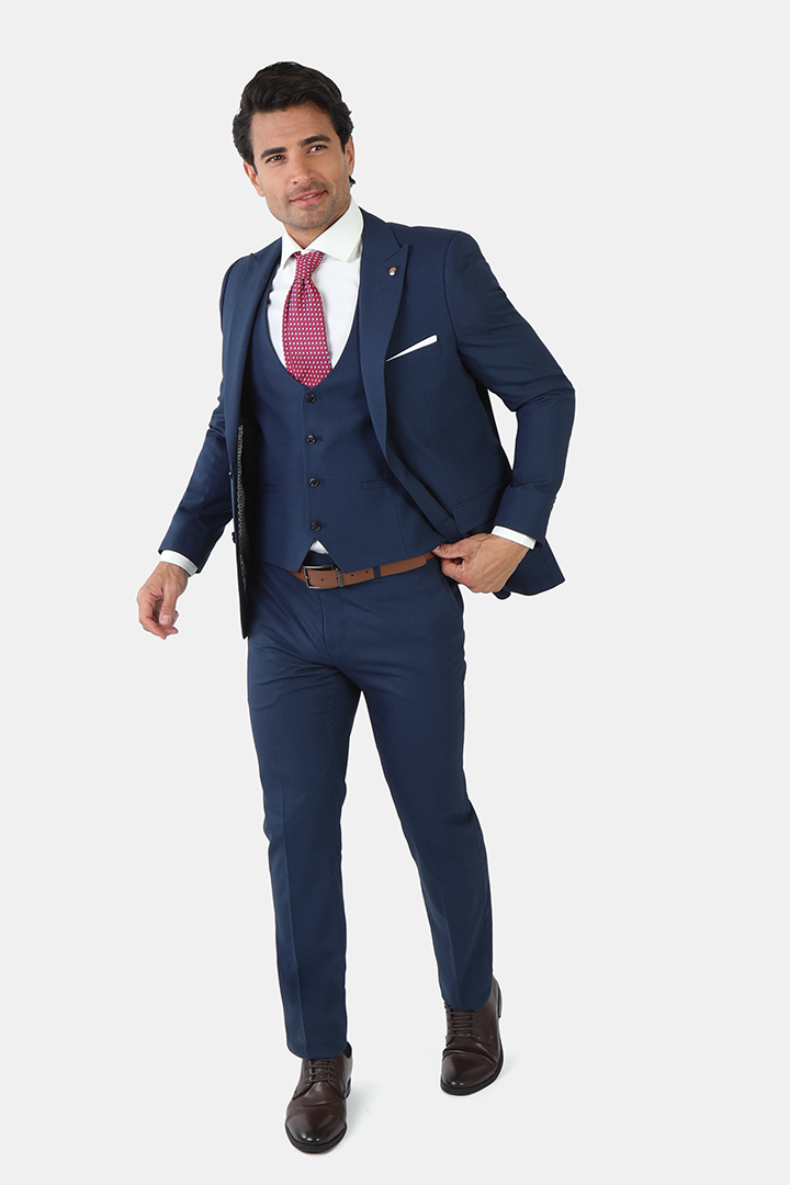 Elevate your formal wardrobe with this navy slim-fit suit from Jack Morgan. Made from a blend of 81% polyester, 17% viscose, and 2% spandex, the fabric offers a smooth, comfortable fit with just the right amount of stretch. Featuring a two-button, two-vent design, this suit has a refined pin-textured pattern that adds depth and texture to the look. Ideal for business meetings, events, or evening gatherings, this suit combines classic navy with a contemporary edge.