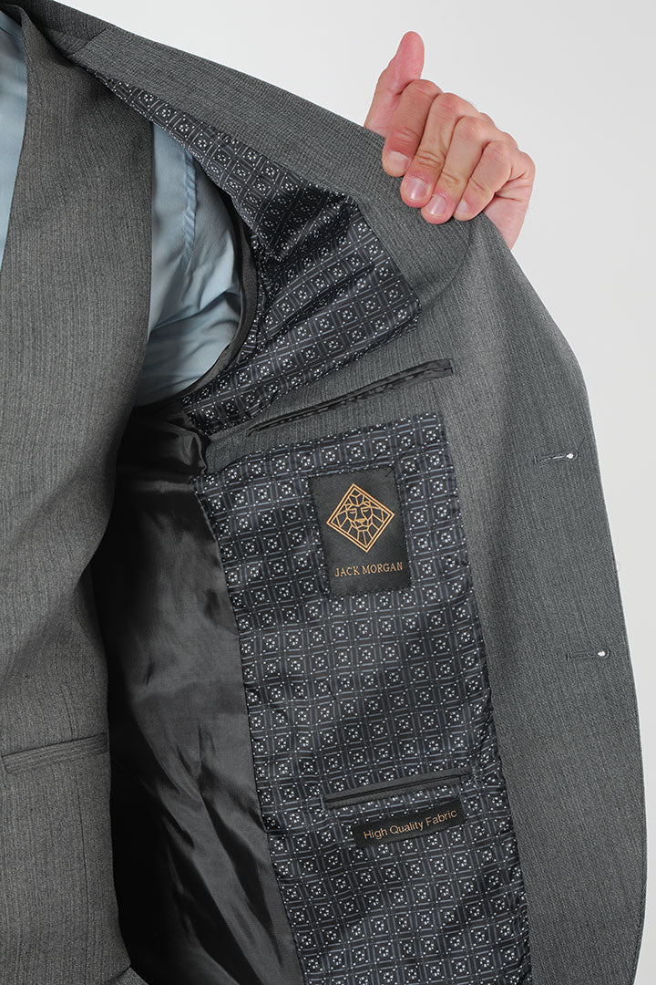 Stand out with the Jack Morgan slim fit suit in black, featuring a unique self-designed fabric that adds a distinctive touch to a classic silhouette. The two-button, two-vent style, paired with a normal lapel, offers a contemporary look that's perfect for both corporate settings and social events. Crafted from durable TR fabric, this suit ensures comfort while maintaining a sharp, modern aesthetic. Elevate your wardrobe with this standout piece, designed for those who seek sophistication and individuality in their formalwear.