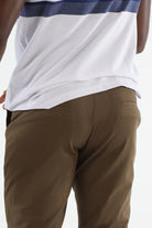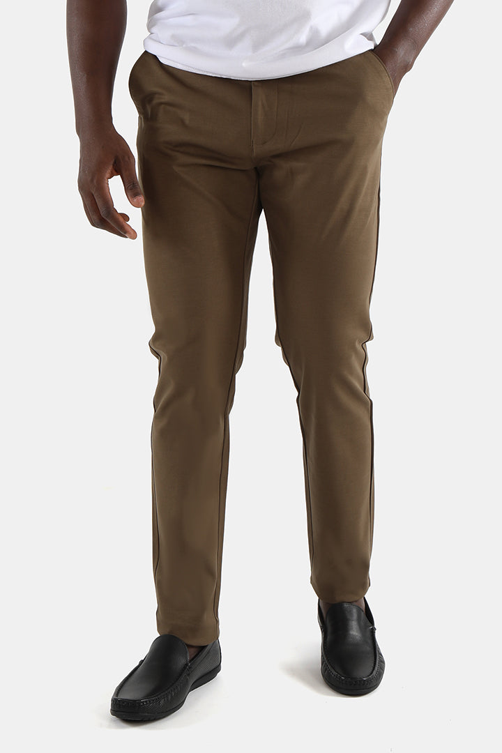 Elevate your weekend wardrobe with these slim-fit khaki trousers by Francisco Tolli. Made from breathable cotton Lycra, they combine durability with all-day comfort. The self-design and rich earthy tone make them ideal for off-duty looks or laid-back office wear.