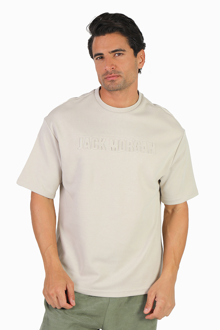 JACK MORGAN LOOSE FIT PLAIN EMBOSSED PRINT T-SHIRT/POLO ROUND NECK HALF SLEEVE