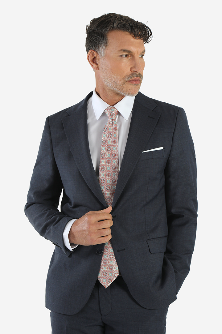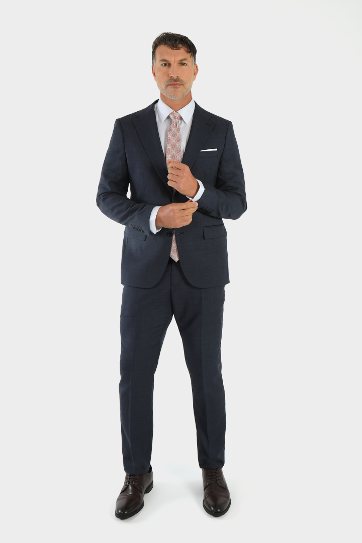 The DKS Formal Suit in navy checks blends timeless elegance with a modern edge. Designed in a 2-button, 2-vent style with a sharp slim fit, it enhances the silhouette while providing ease of movement. Crafted from a premium blend of 55% wool and 45% polyester, this suit offers durability and comfort for extended wear. The checkered pattern adds subtle character, making it an excellent choice for both formal meetings and stylish events. An image is available, showcasing its refined tailoring and rich texture.
