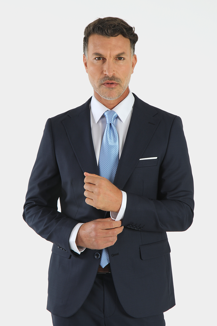 For those who prefer a classic color with a contemporary edge, this navy twill suit offers a sophisticated and polished appearance. The slim fit and two-button, two-vent design ensure you look sharp from all angles. Crafted from a blend of 86% wool, 10% polyester, and 4% lycra, the fabric allows for both comfort and a smart, tailored look. Paired with the matching vest, this suit is ideal for any formal occasion, exuding confidence and elegance.