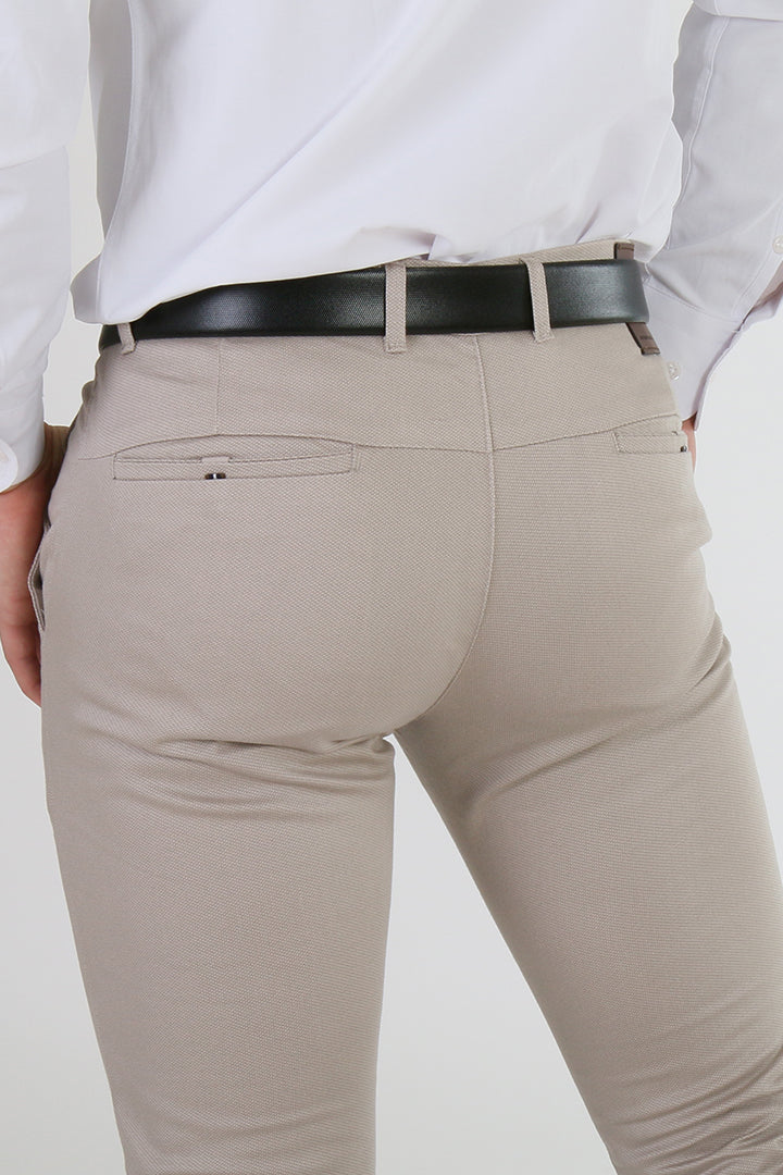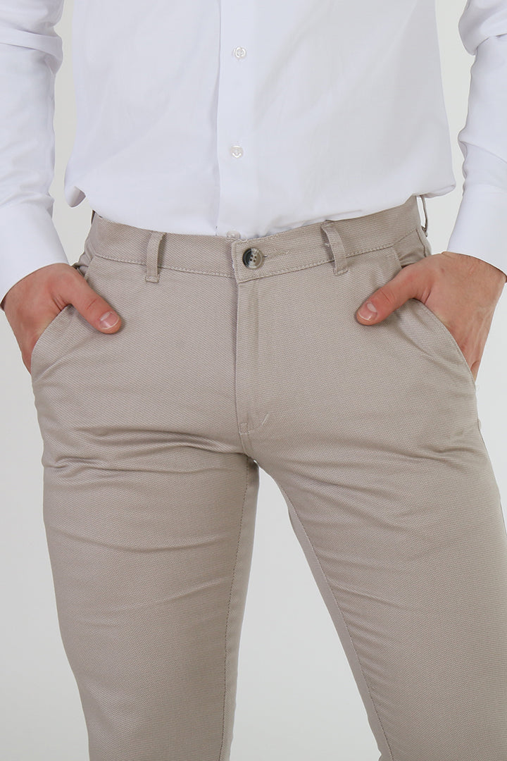 Elevate your casual wardrobe with the Francisco Tolli Casual No Pleat Slim Fit Self Design Trouser. Crafted from a soft and stretchy cotton lycra blend, these trousers provide a comfortable fit that adapts to your movement. The no pleat design offers a sleek, modern appearance, while the subtle self design adds understated elegance. Available in light grey, beige, and cream, these trousers are versatile enough to pair with any casual outfit.