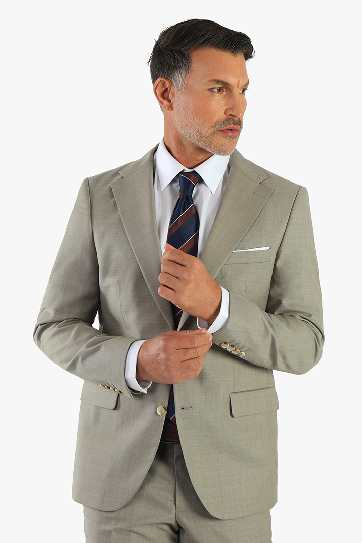 The DKS Formal Beige Suit is a refined addition to any modern wardrobe, blending classic tailoring with contemporary comfort. Designed in a slim fit with a 2-button closure and double vents, this suit ensures a structured yet flexible silhouette. Made from a breathable Fresco weave composed of 74% wool, 18% polyester, and 8% Lycra, it offers a lightweight feel with added stretch for all-day ease. The neutral beige tone makes it ideal for daytime events, weddings, and summer formalwear. Image available to highlight its texture and elegant finish.